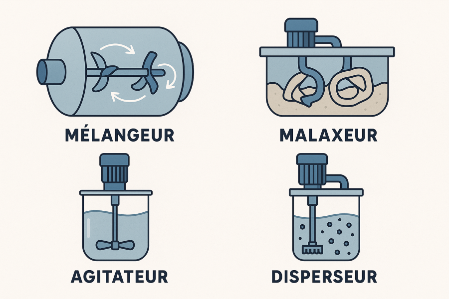 Les procédés d’agitation recouvrent plusieurs familles d’équipements, chacun répondant à une logique fonctionnelle précise. Être capable de distinguer un agitateur d’un malaxeur ou d’un disperseur permet de garantir la bonne adéquation entre la technologie choisie et les contraintes de production industrielle.