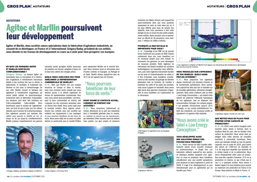 Dans cet entretien, Grégory Badey revient sur la synergie entre Agitec, spécialiste de l’agitation industrielle à entrainement mécanique, et Marllin, experte en solutions de mélange à entrainement magnétique. Cette complémentarité renforce la position du groupe sur le marché des agitateurs, tant en France qu’à l’international.